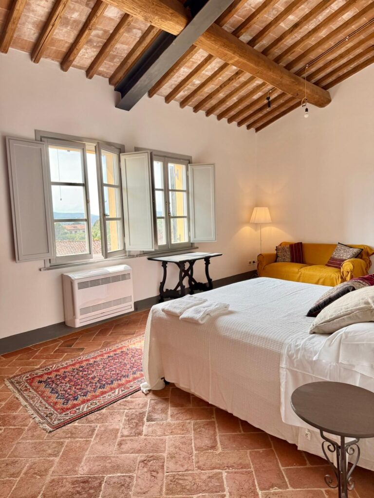 Relax in interiors that blend classic Tuscan style with modern comforts, perfectly situated in Lucignano’s historic streets.